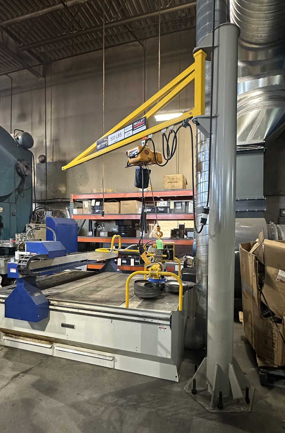 A jib crane is a type of crane that features a horizontal jib or boom, which is an arm that extends horizontally from the crane’s mast or vertical support. This jib supports a movable hoist fixed to either a trolley or directly on the jib, which can move along the jib’s length. Jib cranes are typically mounted on a wall or floor and can rotate, offering a wide range of motion. The jib’s rotation angle can vary, with some cranes offering up to 360 degrees of movement, making them highly versatile for lifting and moving loads in a circular area around the crane’s base. They are widely used in industrial and manufacturing settings, workshops, and warehouses, particularly in areas too small for larger cranes or where quick, frequent lifting is needed. Jib cranes are ideal for localized lifting tasks and can handle loads ranging from very light to several tons, depending on their design and construction.